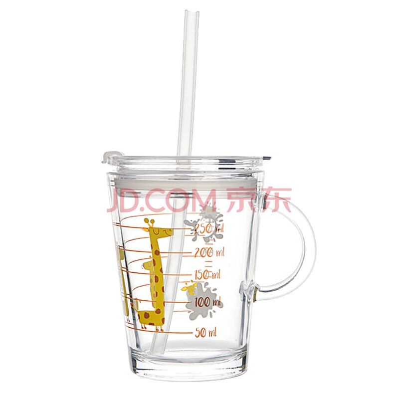商品相册:帕莎帕琦吸管杯进口钢化耐热玻璃带刻度宝宝牛奶杯儿童泡奶粉水杯子385ML第