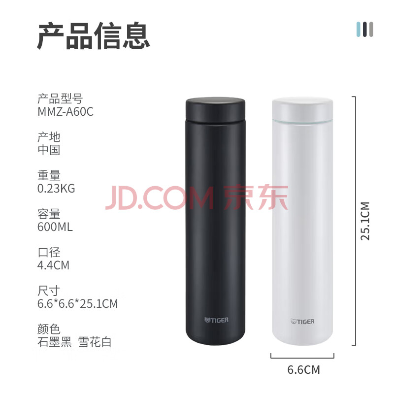商品相册:虎牌(TIGER)保温保冷杯轻量便携不锈钢男女水杯MMZ-A60C-WW雪花白600ml第