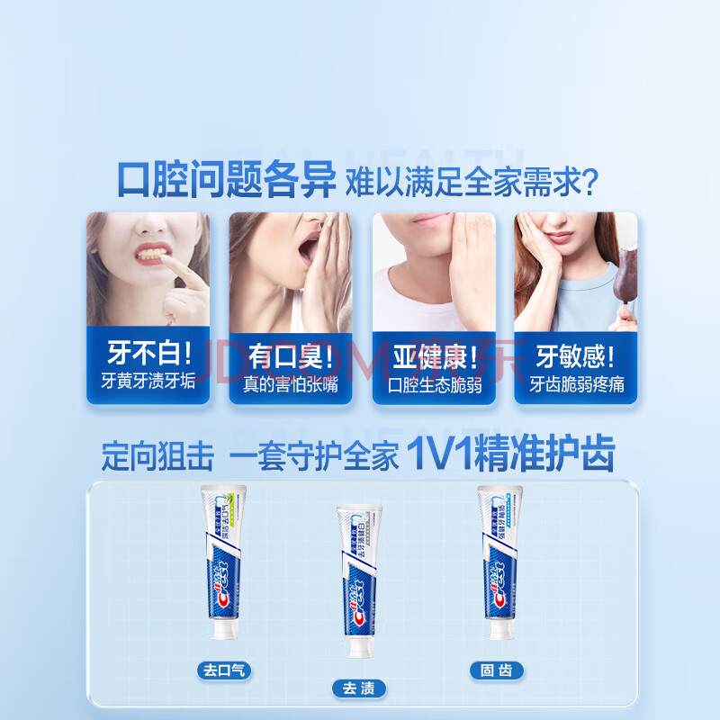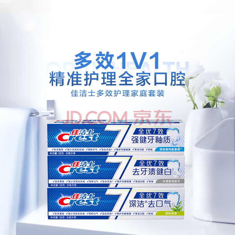 商品相册:佳洁士全优7效固齿护龈美白清口含氟防蛀牙膏3支共540g京东自营第
