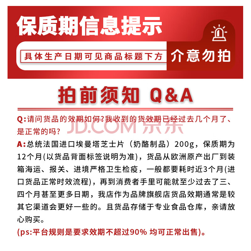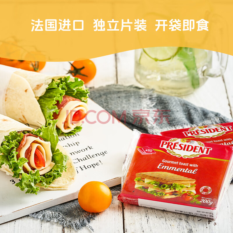 商品相册:总统(President)法国进口埃曼塔芝士片(奶酪制品)200g 一包 面包 披萨 食材第