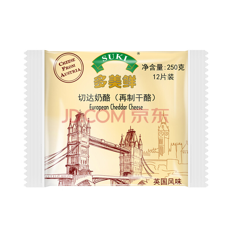 商品相册:多美鲜(SUKI)奥地利进口 切达芝士片250g 冷藏即食 三明治 原制奶酪 早餐第