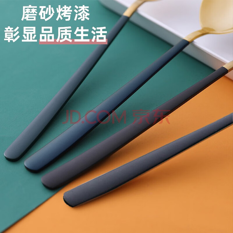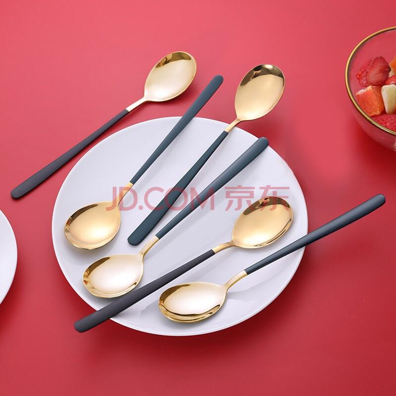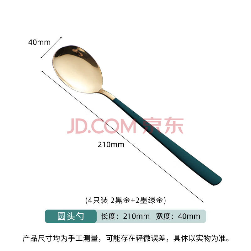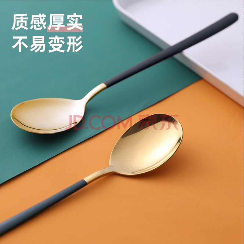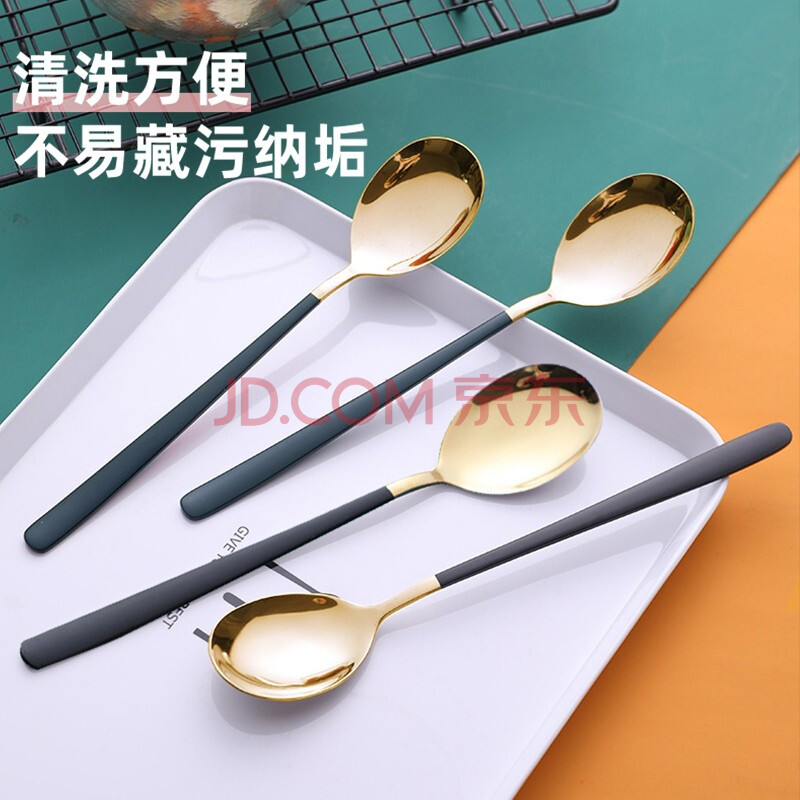 商品相册:拾画不锈钢勺子 加厚长柄主餐勺汤勺咖啡勺甜品冰淇淋勺黑绿分色4只装第