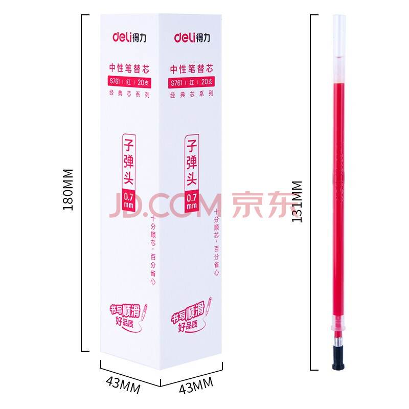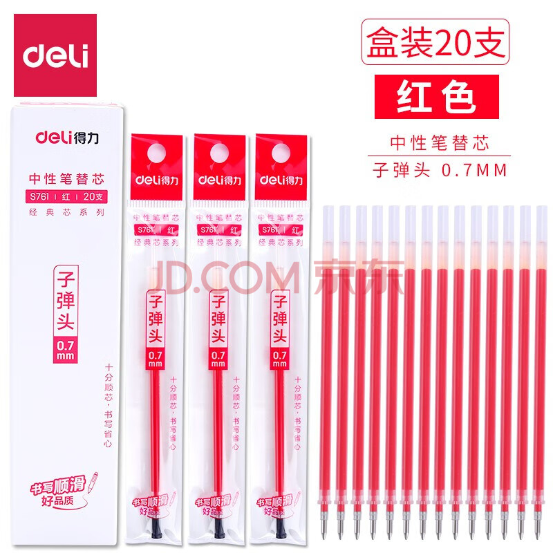 商品相册:【开学必备】得力S761中性笔芯0.7mm子弹头(红)(20支/盒)邮储专享第