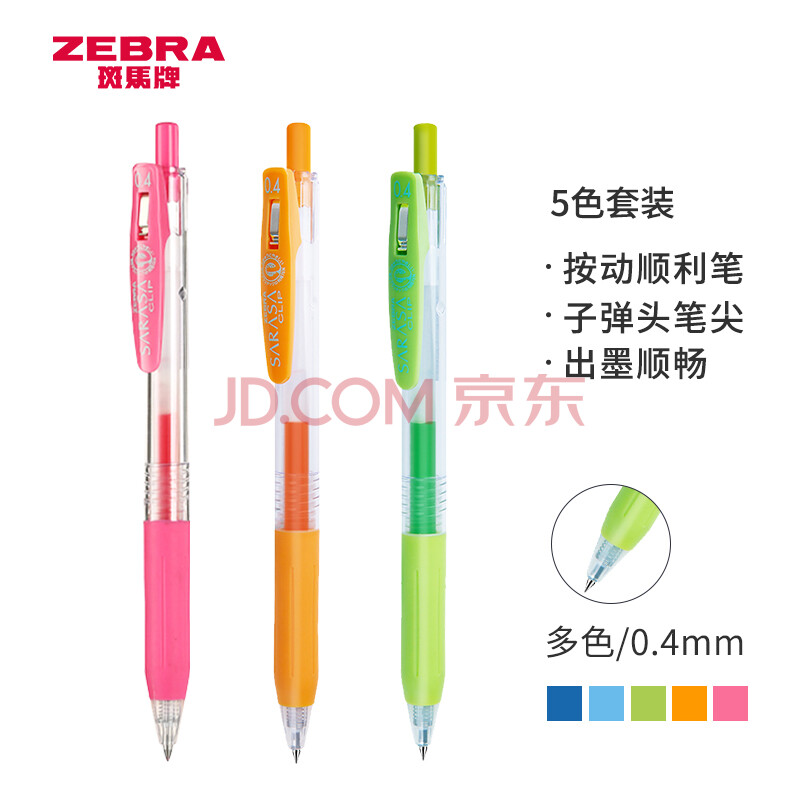 商品相册:斑马牌(ZEBRA)JJS15中性笔 0.4mm按动签字笔 学生彩色手账笔重点标记笔 JJS15-5CA 5色套装第