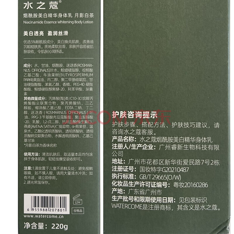 商品相册:水之蔻美白身体乳220g烟酰胺提亮持久留香72小时保湿滋润干燥皮肤润肤乳第