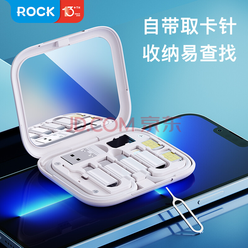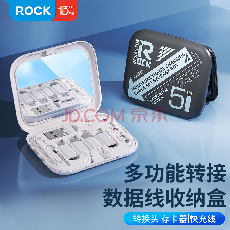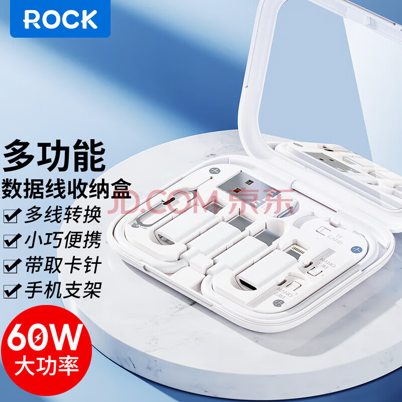 商品相册:ROCK【60W快充】多功能充电线三合一数据线OTG转接头苹果安卓type-c转usb多接口转换头传输便携收纳盒第