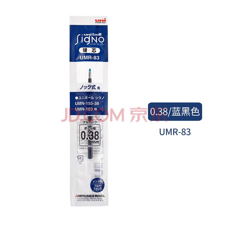 商品相册:uni三菱 uni-ball UMR-83按动笔芯0.38mm中性笔蓝黑色替芯 适用签字笔UMN-138系列 3支第