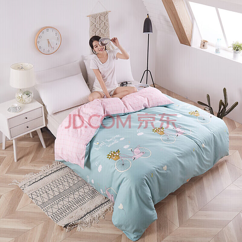 商品相册:艾薇 纯棉被套单件学生宿舍单人床柔软舒适全棉被罩 伊尚蓝 150*210cm第