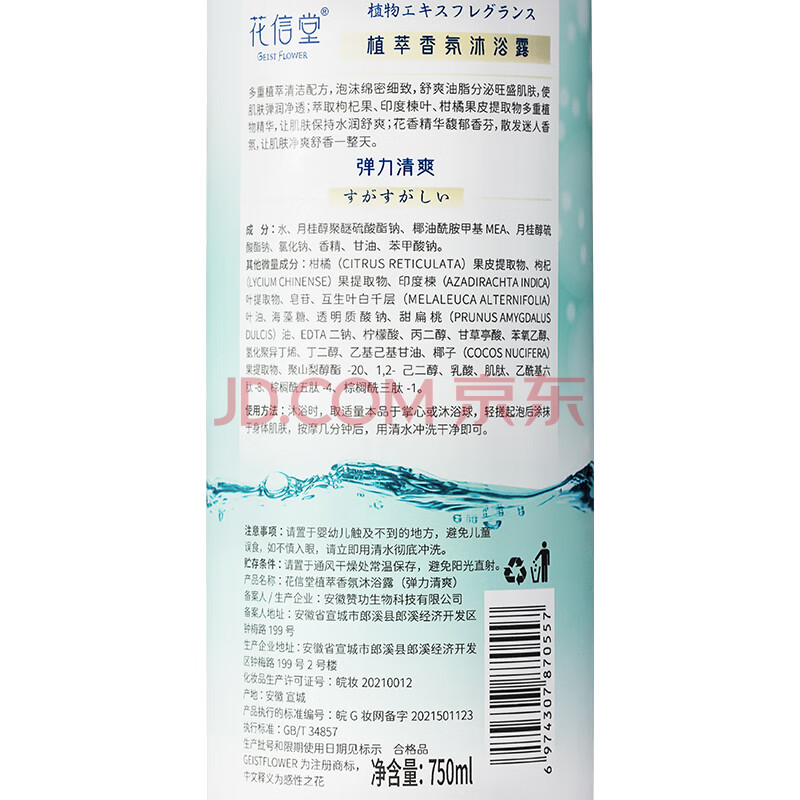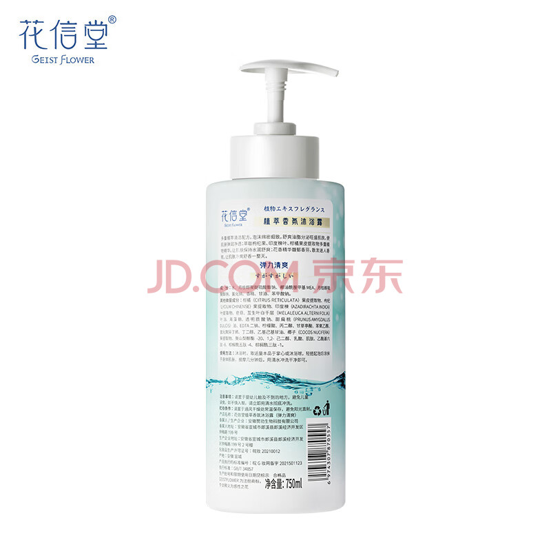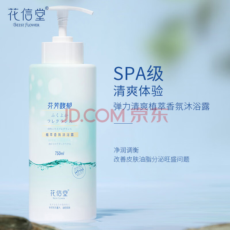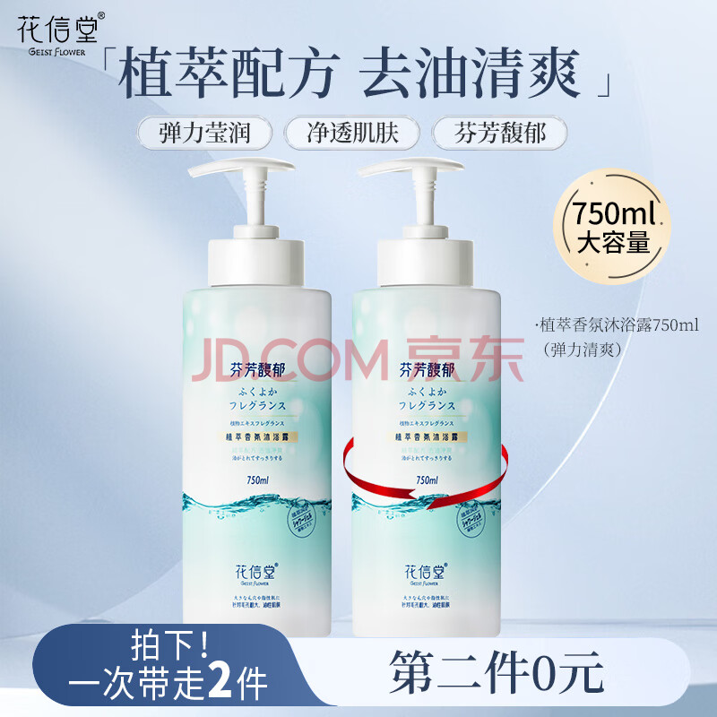 商品相册:花信堂清爽沐浴露止痒弹力清新舒爽750ml 男女士通用 香味持久滋润保湿 第