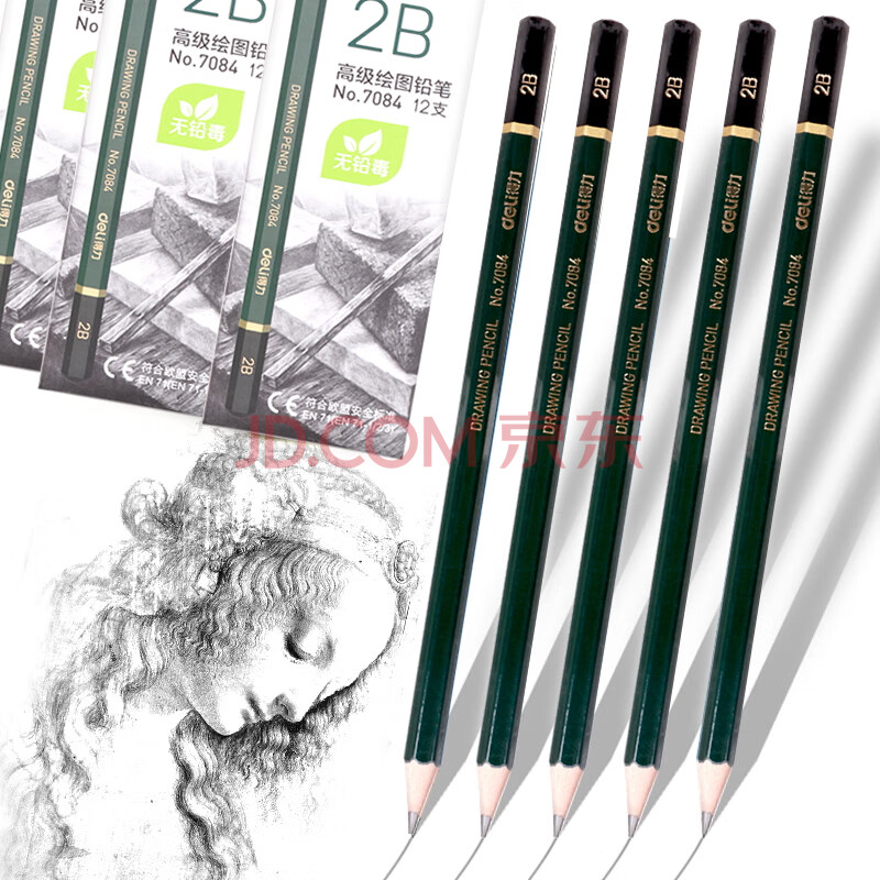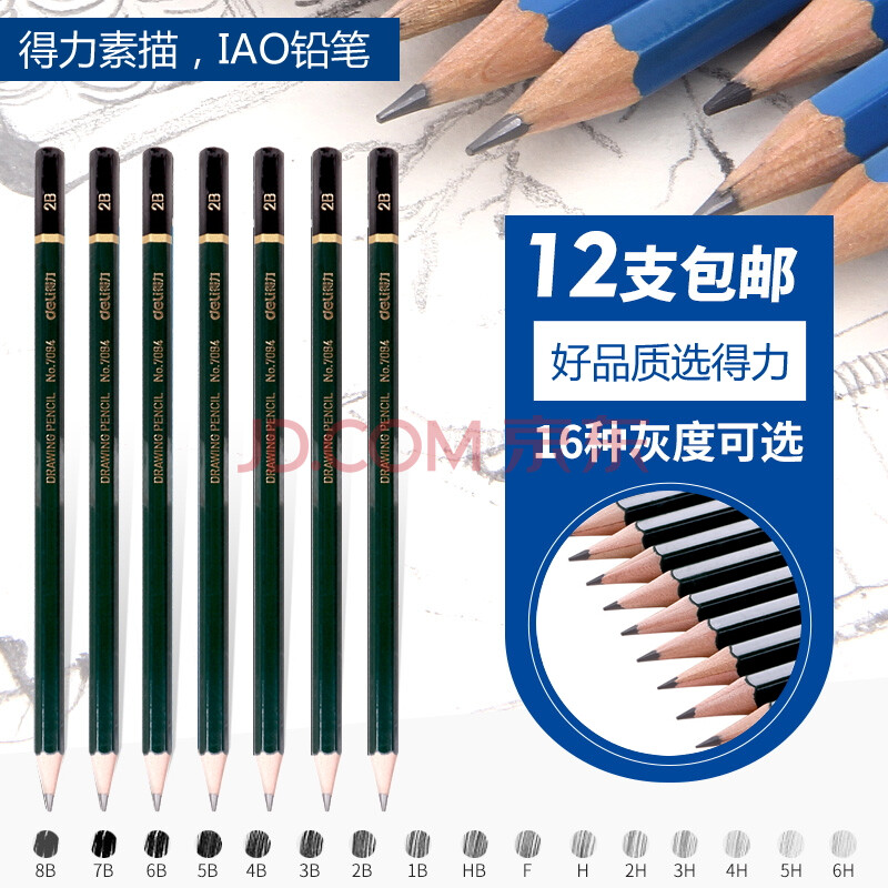 商品相册:【开学必备】得力 6841 绘图铅笔 47x14.5x201m 12支/盒 (单位:盒) 绿色 邮储专享第