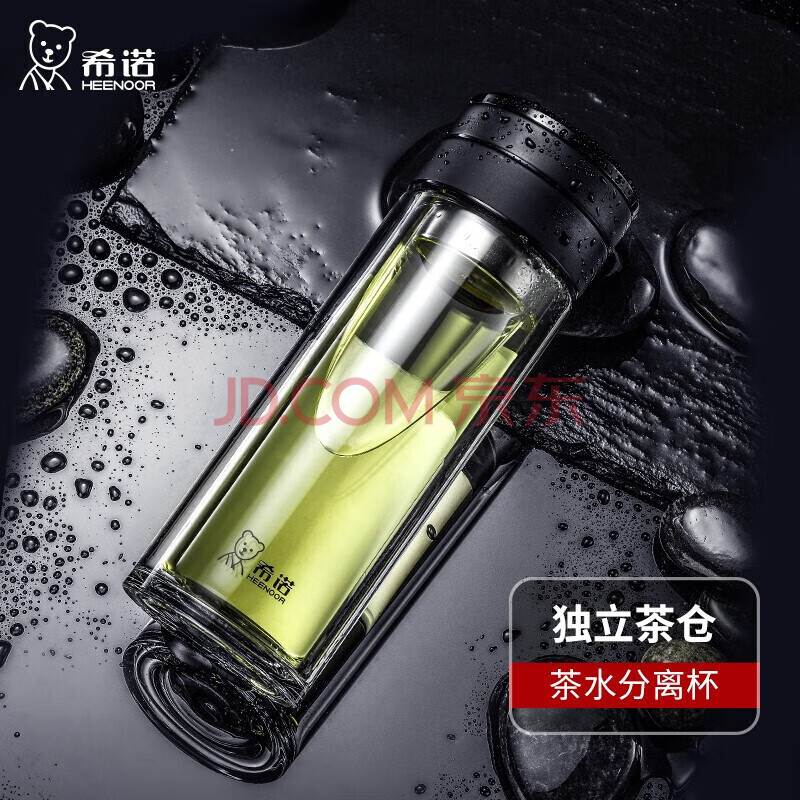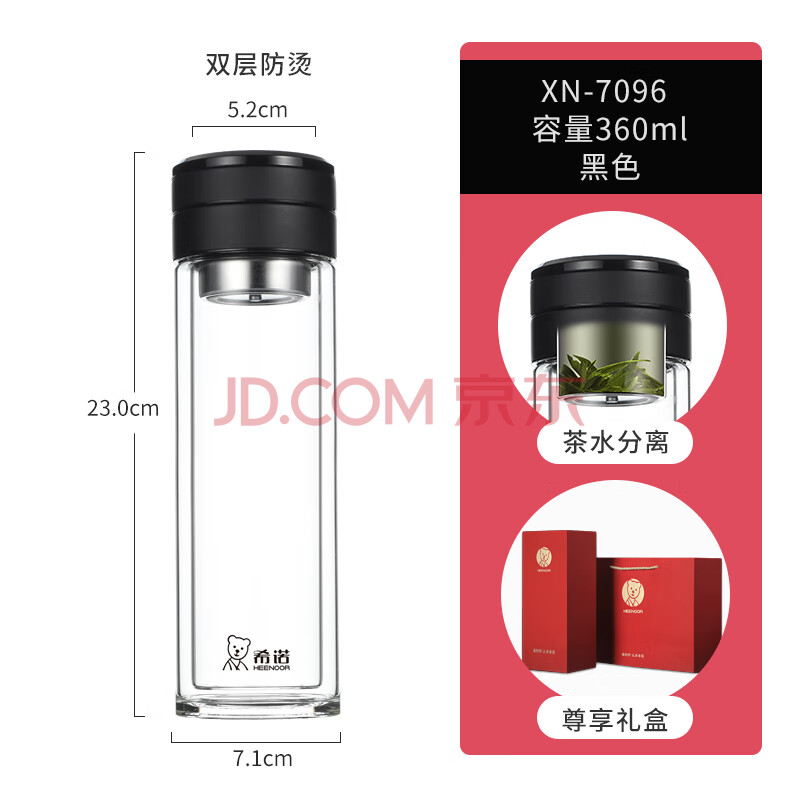 商品相册:希诺双层玻璃杯男茶水分离杯高档泡茶杯子车载水杯XN-7096黑色 360mL第