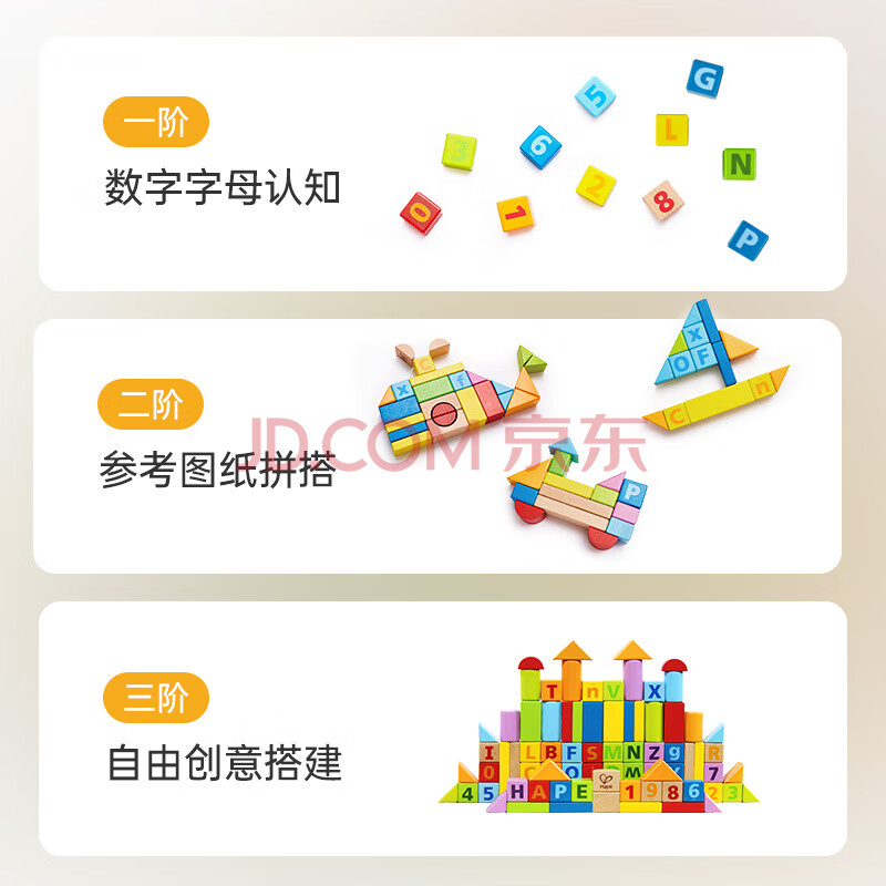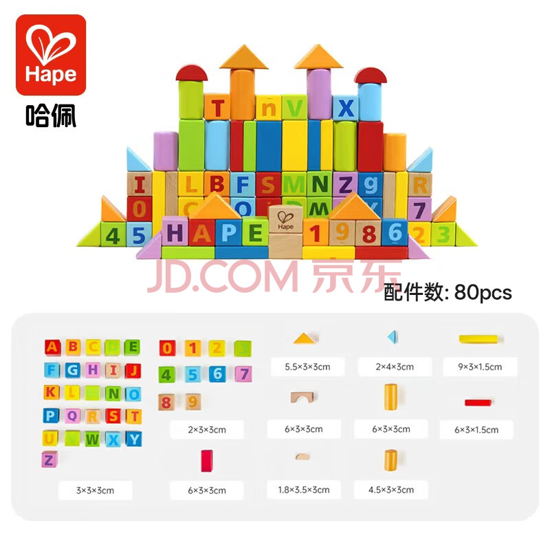 商品相册:Hape(德国)儿童积木玩具桶装80粒进口山毛榉数字字母生日礼物E8402第