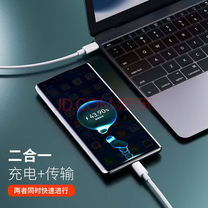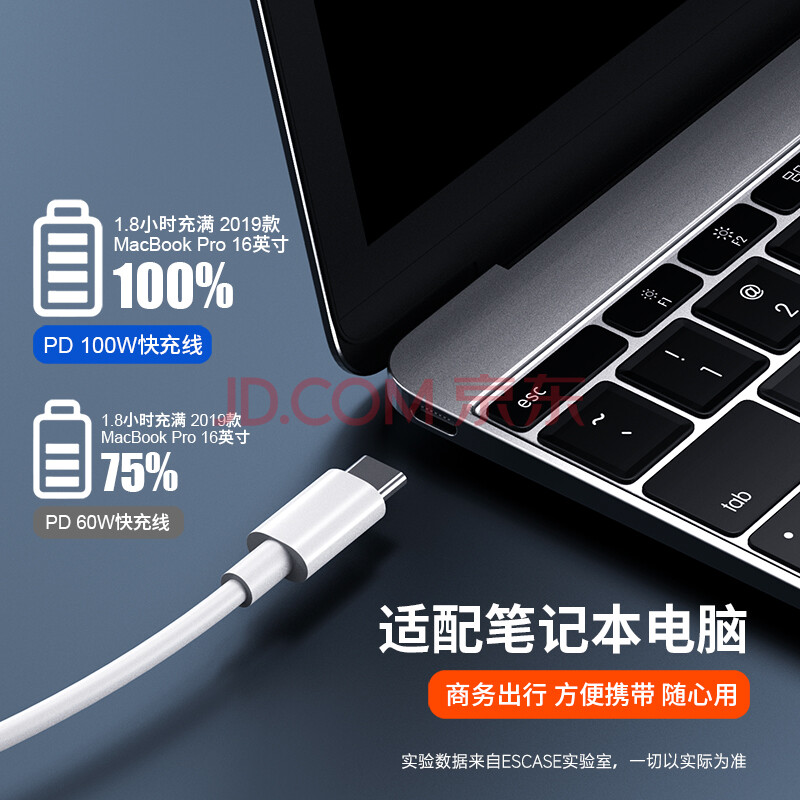 商品相册:ESCASE 双头Type-C数据线5A快充PD100W充电器线适用苹果16Macbook华为小米手机1.5米CC-100超级白第