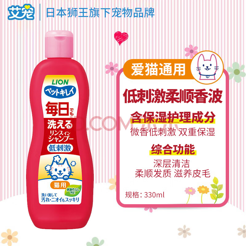 商品相册:狮王艾宠宠物沐浴露柔和花香330ml猫咪用除臭除味温和猫咪沐浴露第
