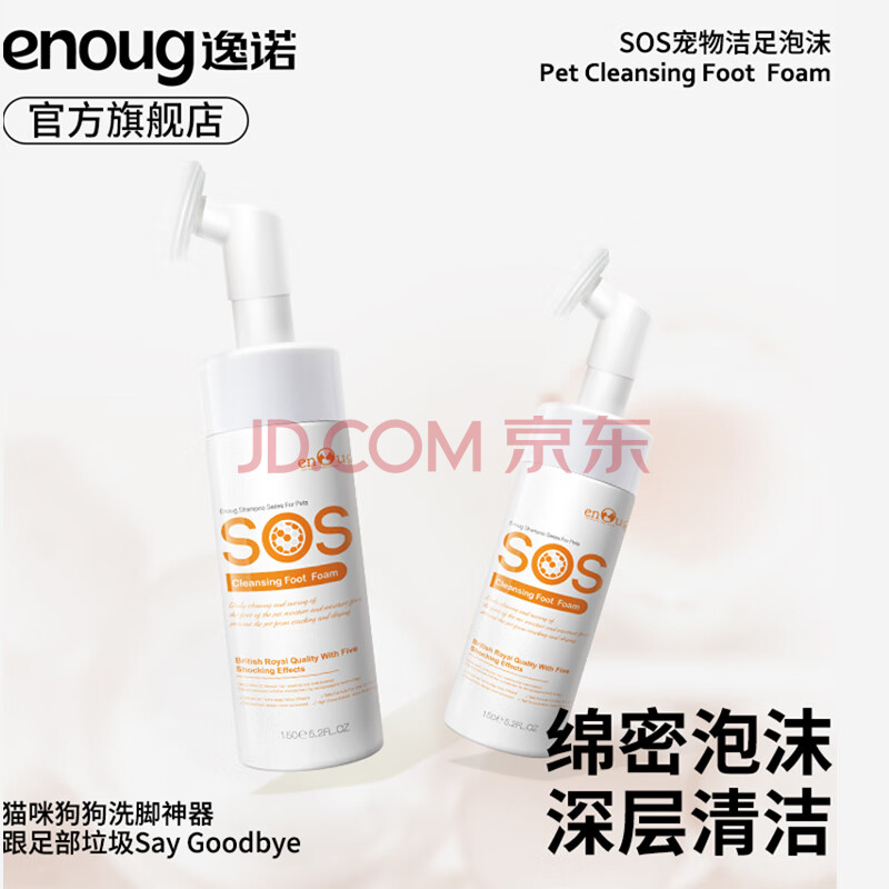 商品相册:逸诺(enoug)SOS宠物洁足泡沫免洗猫咪狗狗洗脚神器香波脚爪清洁护理用品150ml第