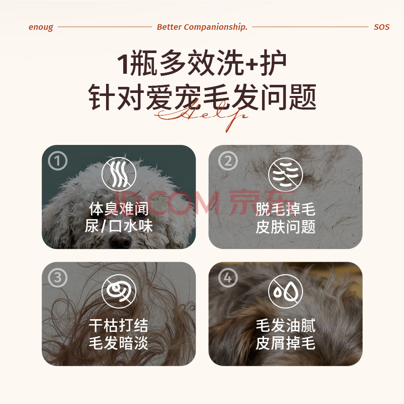 商品相册:逸诺(enoug)SOS狗狗沐浴露洗澡浴液去黄美白萨摩耶比熊白毛犬宠物沐浴露530ml第