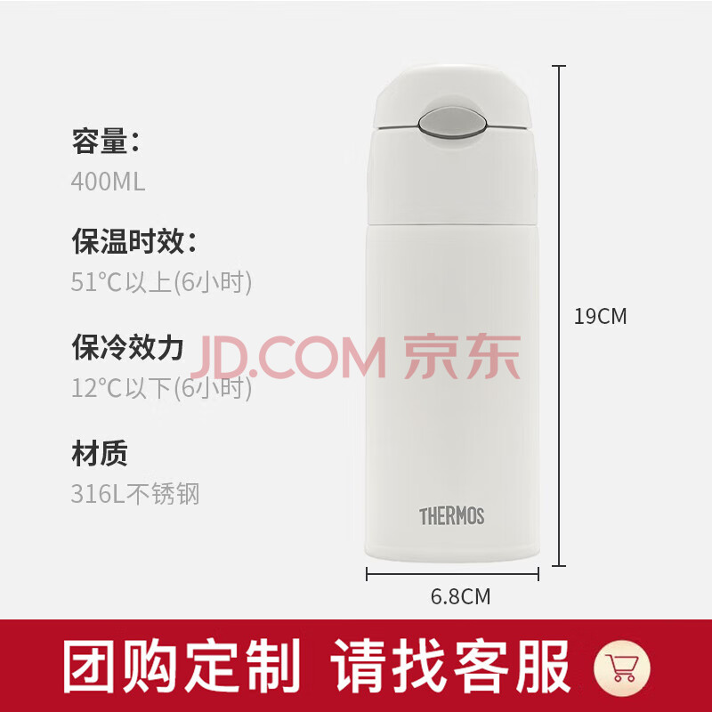 商品相册:膳魔师(THERMOS)400ml保温杯吸管杯不锈钢男女士保冷水杯子TCMI-400S WH第