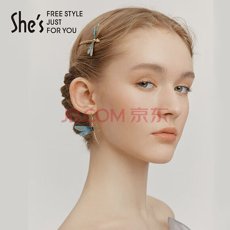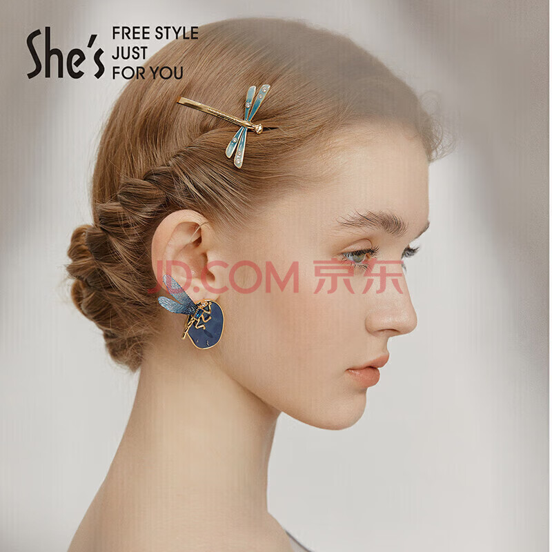 商品相册:She's茜子发饰蓝蜓集序手工滴油渐变蜻蜓边夹时尚发卡生日礼物送女友第