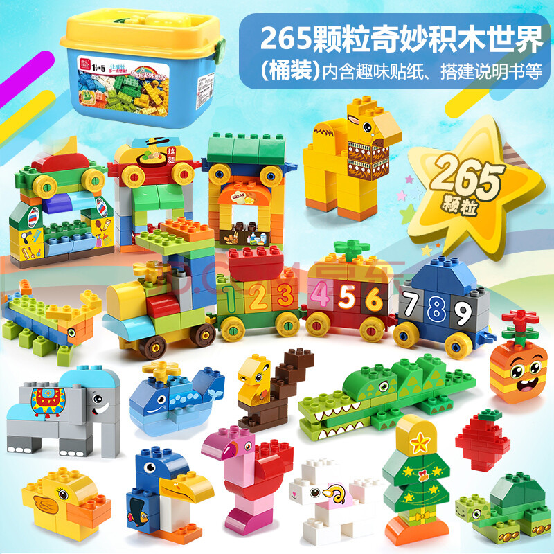 商品相册:费乐(FEELO)兼容乐高大颗粒男女孩拼装积木玩具儿童生日礼物265粒桶第