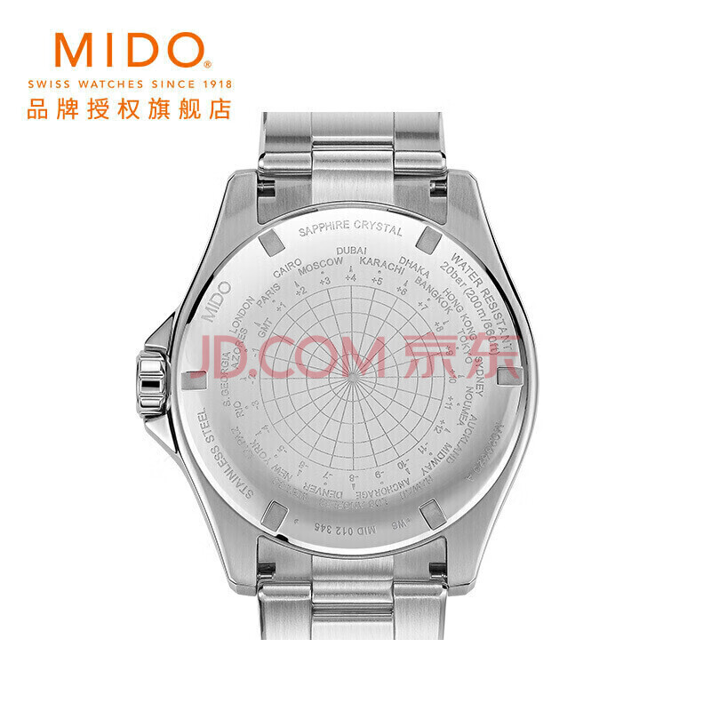 商品相册:美度(MIDO)瑞士手表 领航者系列 双时区 长动能 防水运动 机械钢带男表第