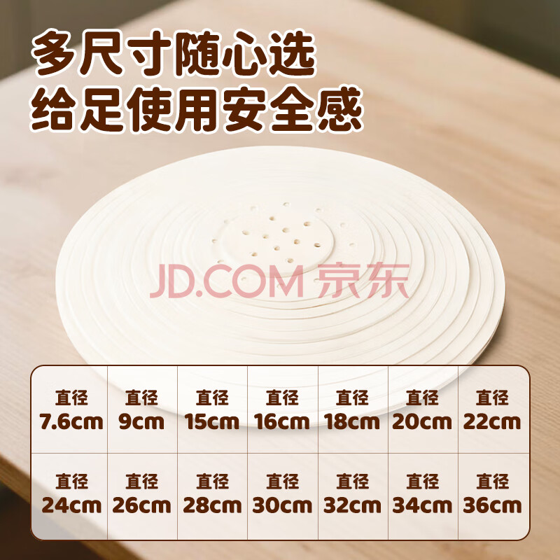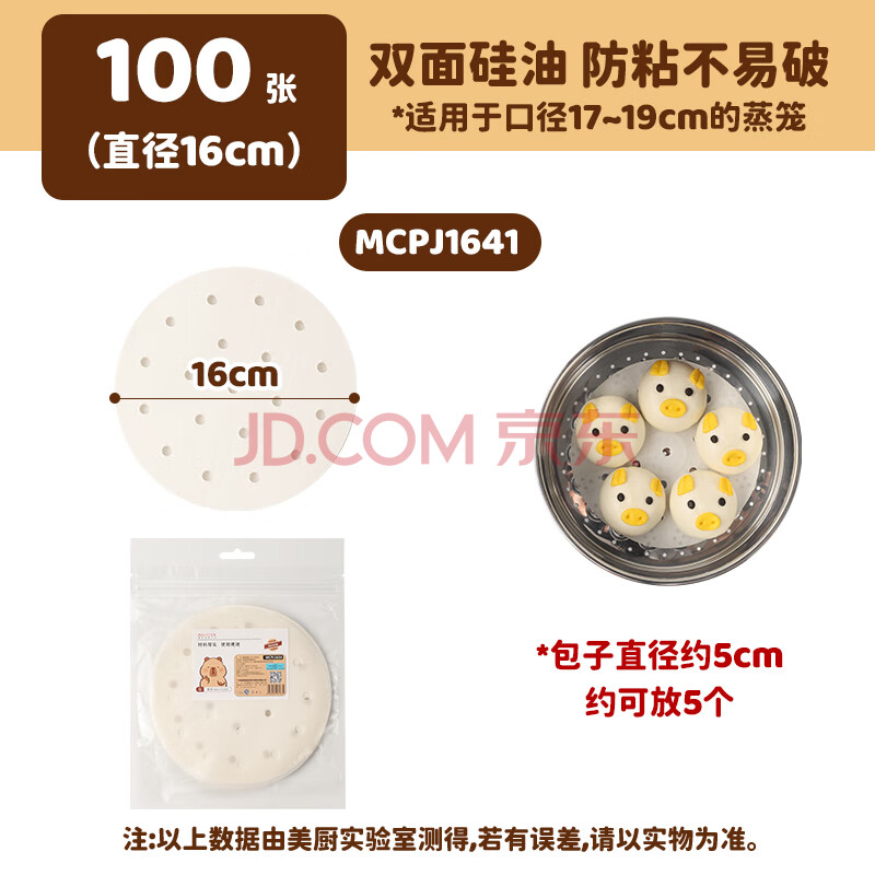 商品相册:美厨(maxcook)蒸笼纸垫纸蒸包子纸蒸馒头纸不粘一次性100张 直径16cm MCPJ1641第1张/共8