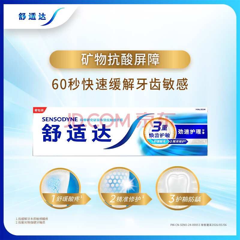 商品相册:舒适达劲速护理牙膏180g 抗敏含氟防蛀护龈 新旧包装随机发第