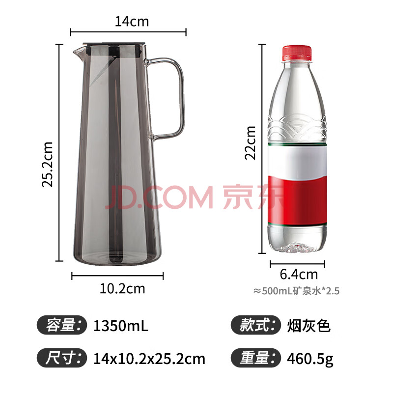 商品相册:JEKO&JEKO凉水壶耐高温冷水壶玻璃杯家用晾水壶大容量花茶壶 1350mL烟灰色第
