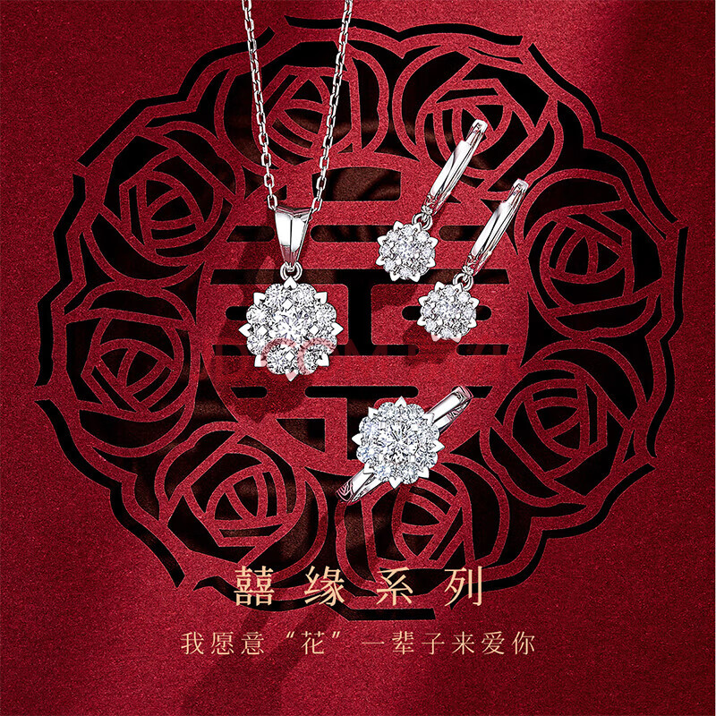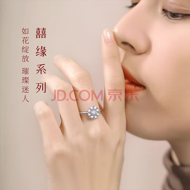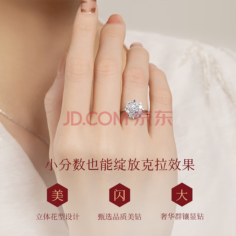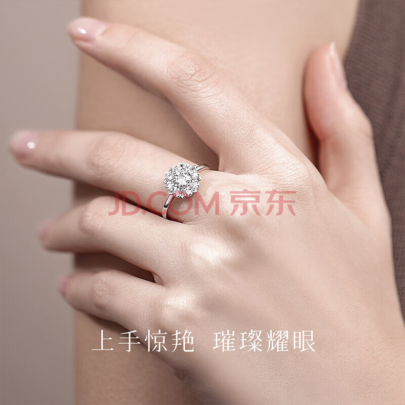 商品相册:喜钻生日礼物女人花PT950铂金钻戒女求婚结婚钻石戒指50分效果第