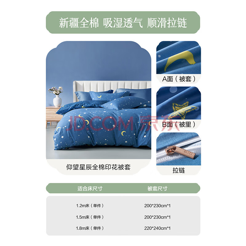 商品相册:百丽丝水星家纺出品纯棉被套单件100%全棉被罩 家庭双人床上用品被套第