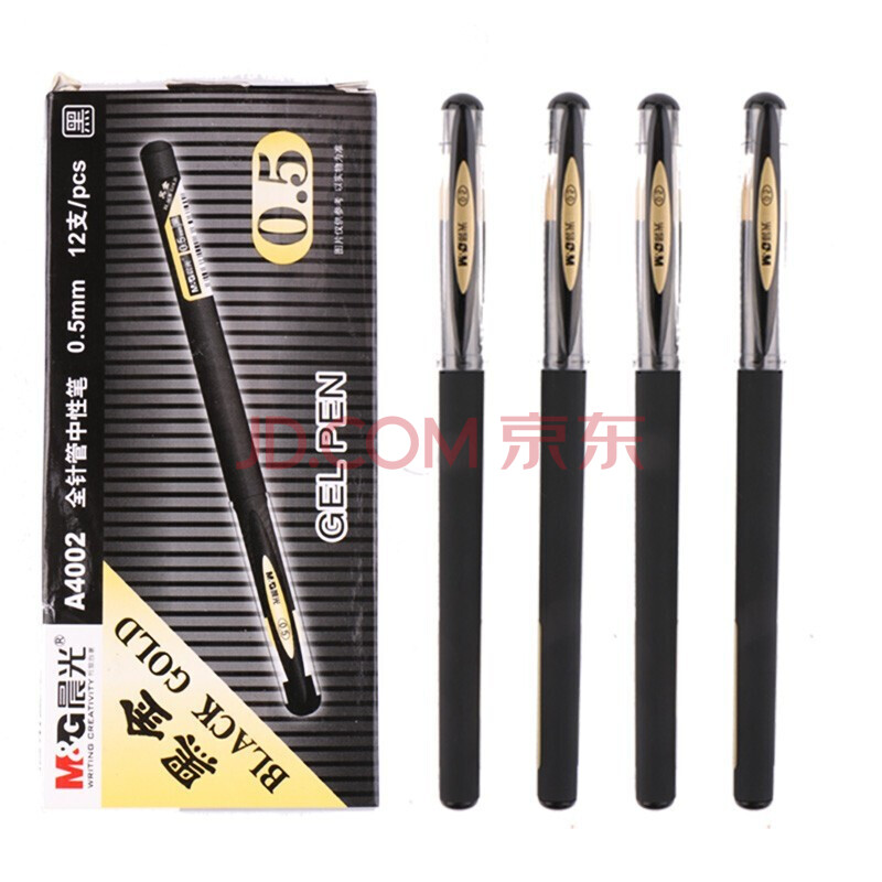 商品相册:晨光(M&G)A4002黑金系列中性笔全针管碳素黑色磨砂杆考试水笔办公签字笔 0.5黑色12支装【ZY】第