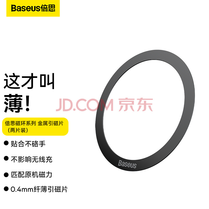 商品相册:倍思 【两片装】无线充电磁吸贴片 引磁环车载手机支架环型磁铁背贴吸盘 通用苹果14/13Pro华为小米黑第