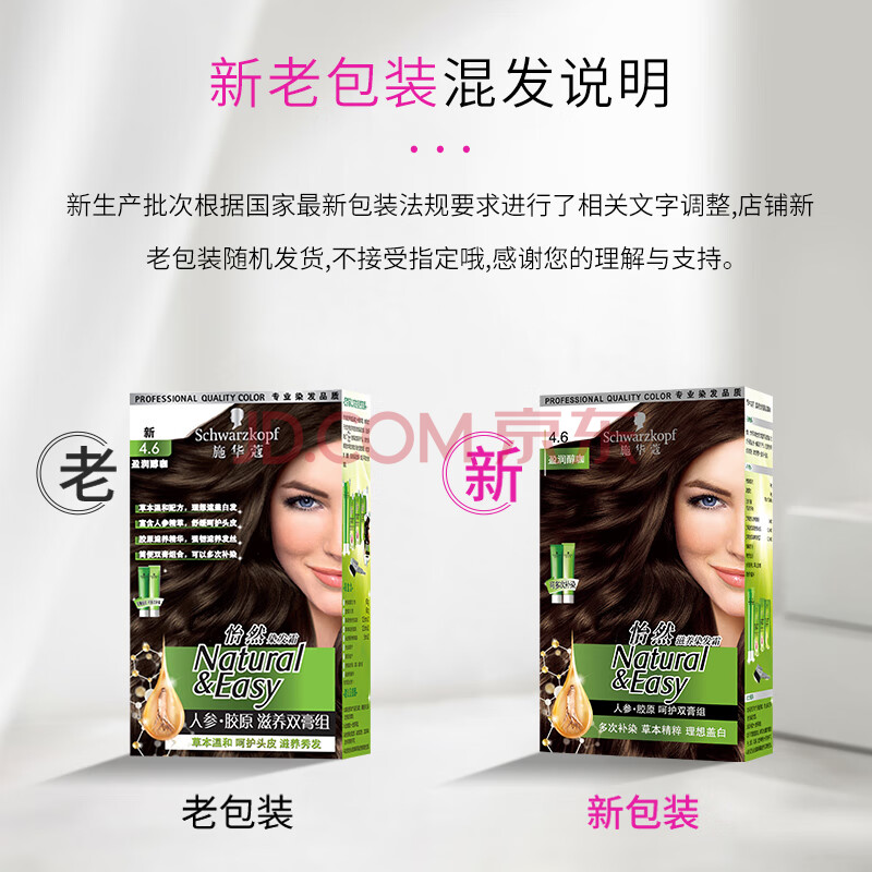 商品相册:施华蔻(Schwarzkopf)怡然滋养染发霜4.6盈润醇咖 染发剂染发膏植物人参 多次盖白补染第
