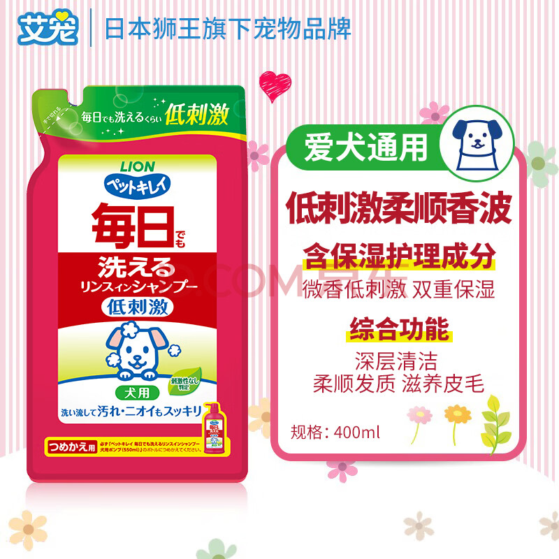 商品相册:狮王艾宠宠物沐浴露柔和花香替换装400ml狗狗犬用温和抑菌沐浴露第