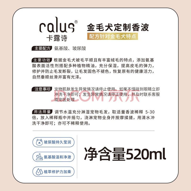 商品相册:卡露诗(calus)宠物狗狗沐浴露成幼犬通用除臭洗澡液香波金毛专用定制520ml第
