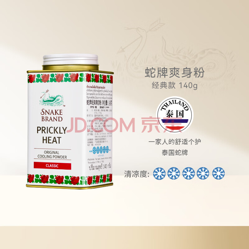 商品相册:蛇牌(SNAKE BRAND)经典清凉粉140g 泰国原装进口 泰国蛇牌爽身粉 蛇粉 痱子粉第