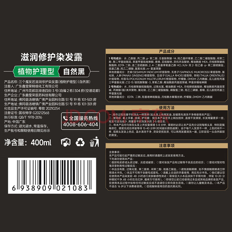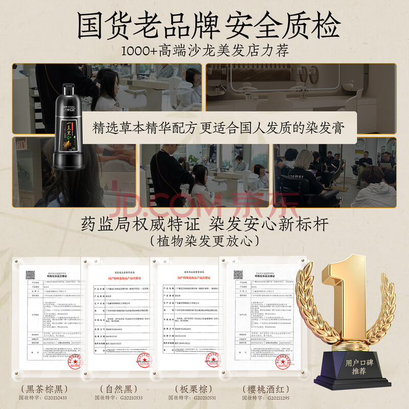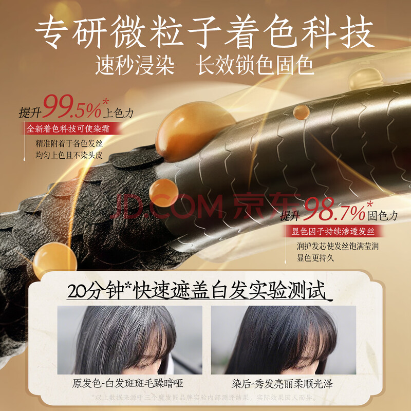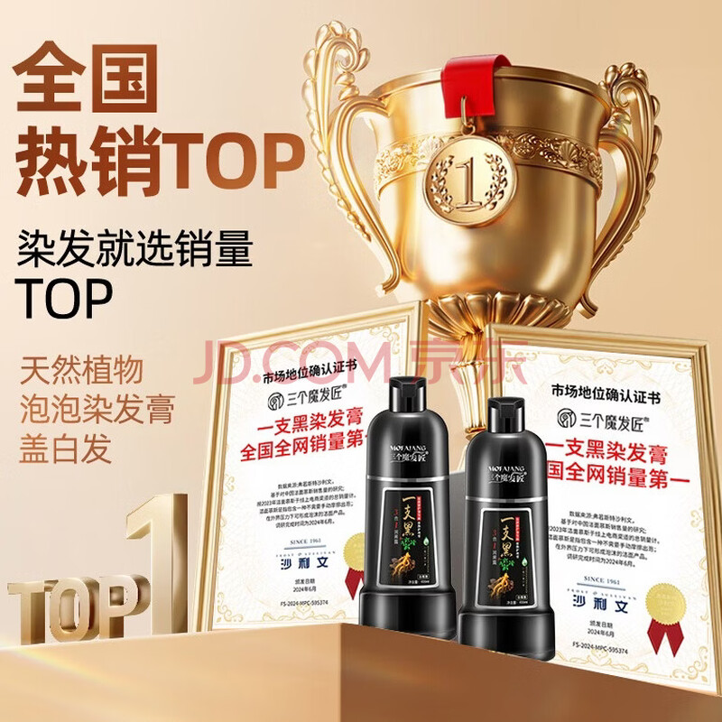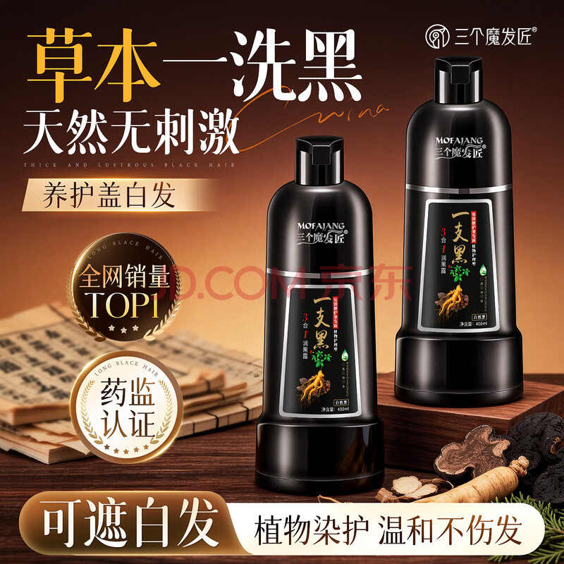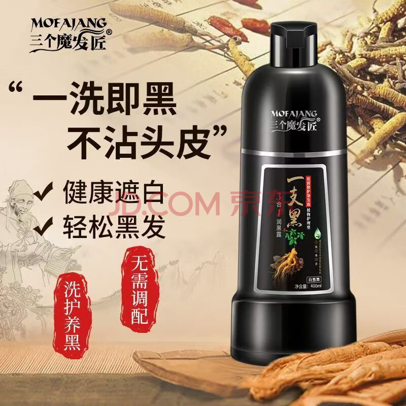 商品相册:三个魔发匠一洗黑染发膏泡泡染天然无刺激一支黑草本染发剂盖白发自然黑第