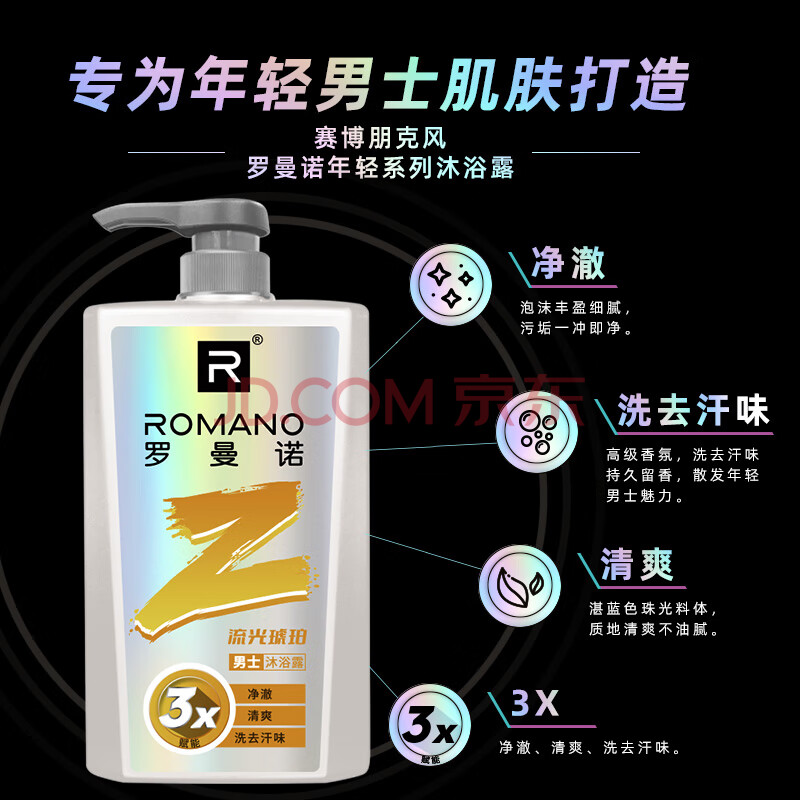 商品相册:罗曼诺(ROMANO)男士沐浴露持久留香 清爽控油古龙香氛沐浴液男 流光琥珀550g第