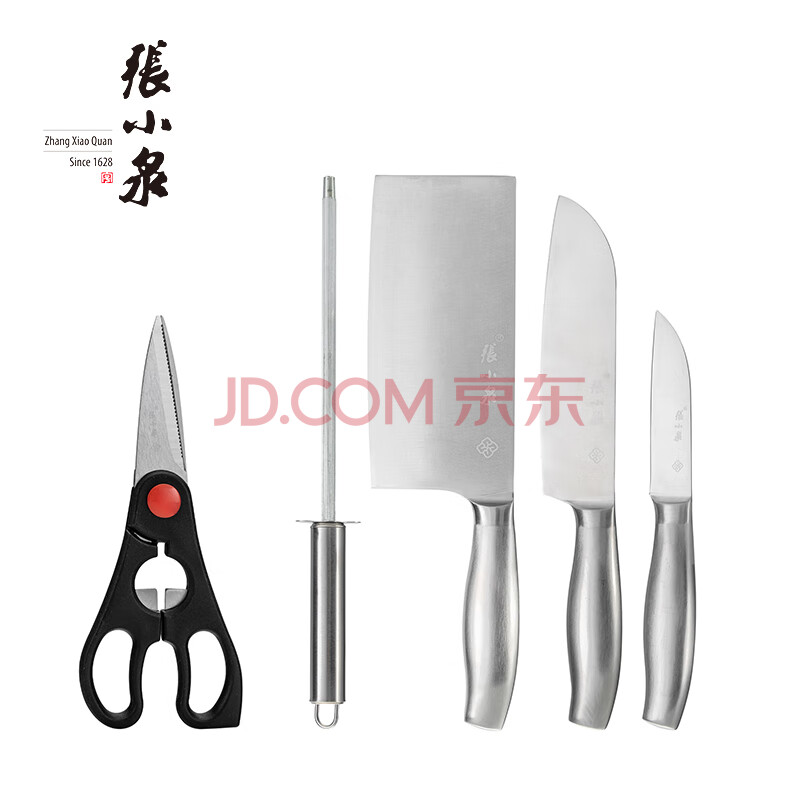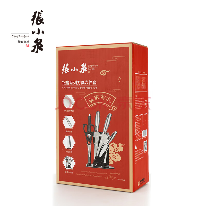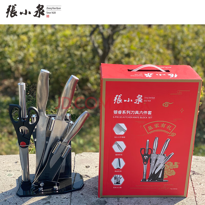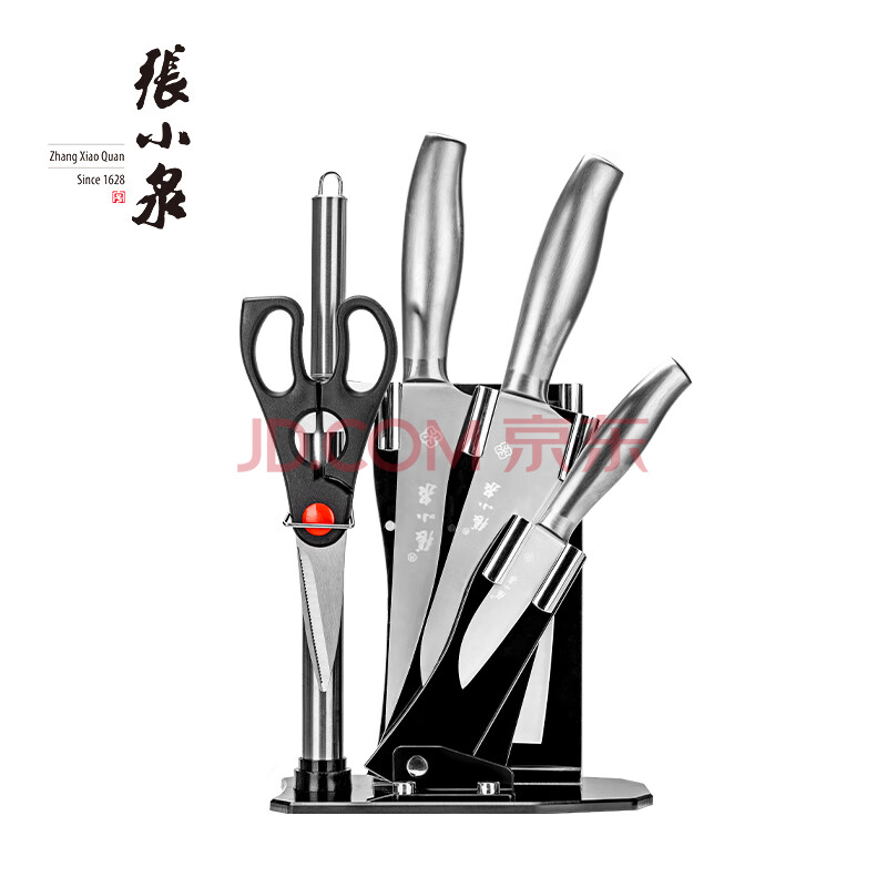 商品相册:张小泉 D40500100 银睿系列 刀具六件套 厨房不锈钢套刀 斩骨刀水果刀【自带刀座】第