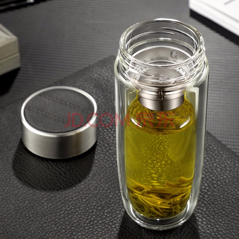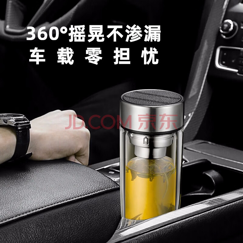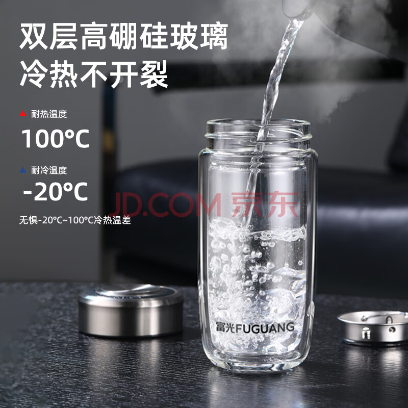 商品相册:富光玻璃杯双层 带茶隔高硼硅玻璃水杯 茶水分离车载泡茶杯子男320ml第