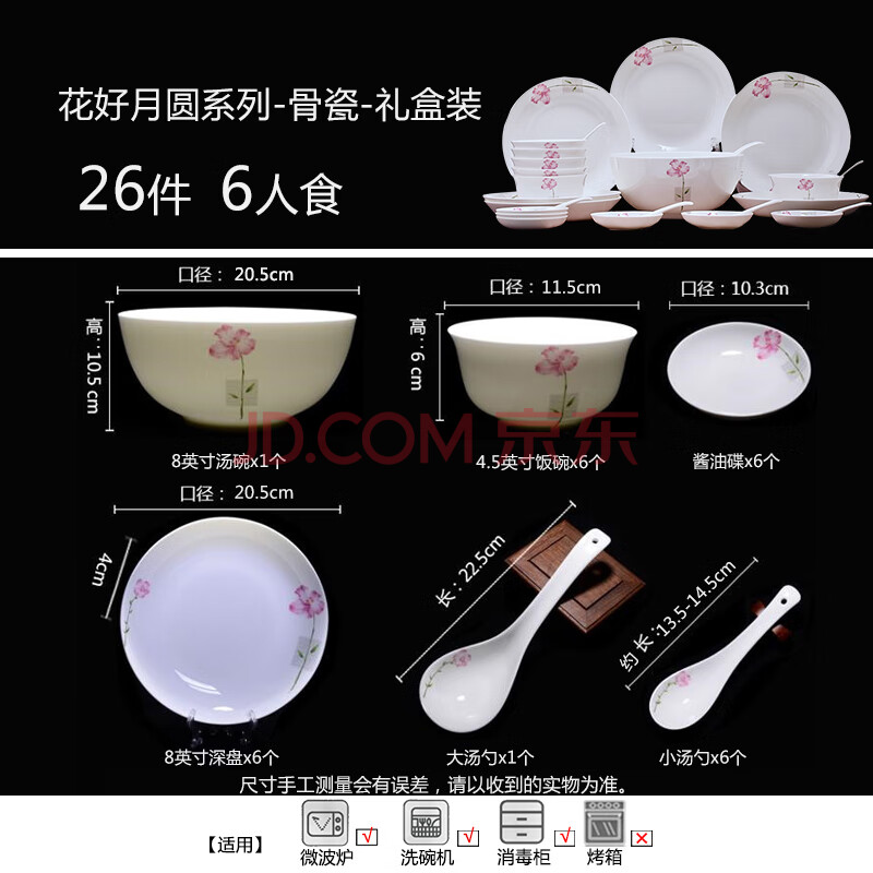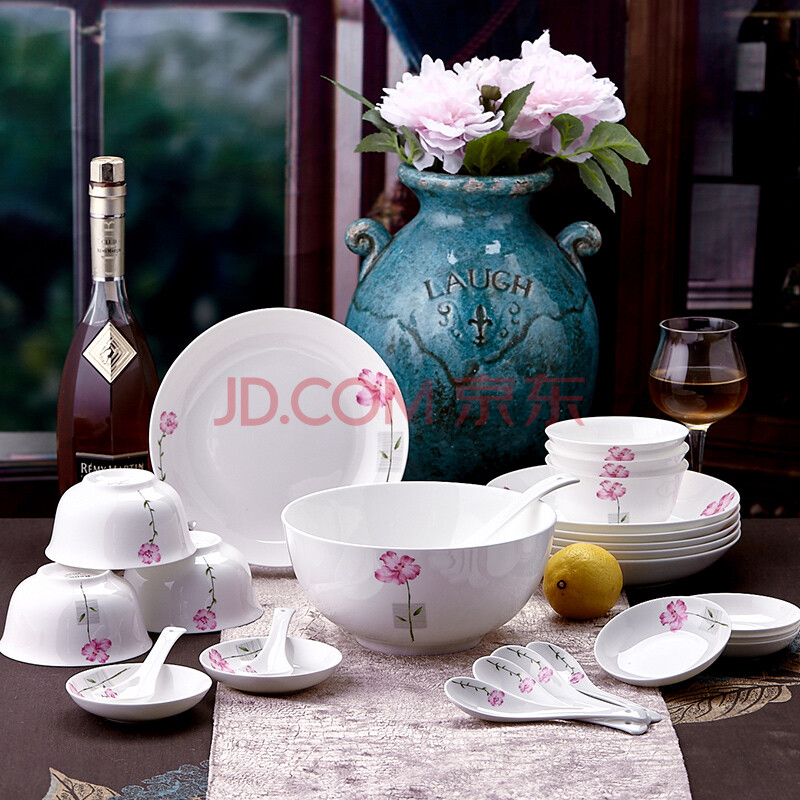 商品相册:Remec骨瓷花好月圆26头餐具套装 碗盘碟 陶瓷餐具 礼盒餐具第