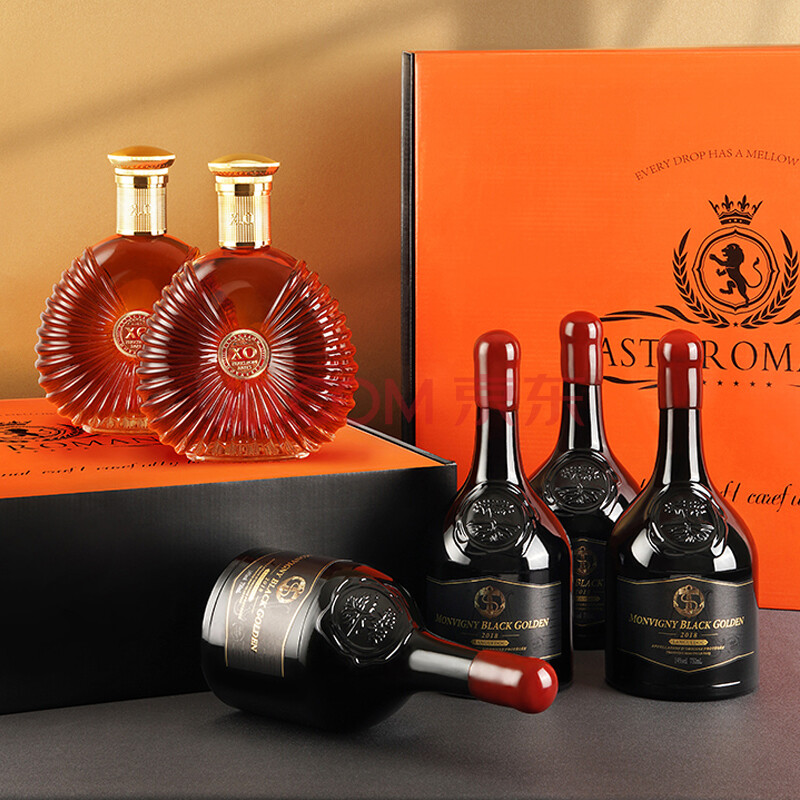 商品相册:歌瑞安 法国进口14度蜡封红酒赤霞珠干红葡萄酒XO白兰地红洋组合整箱装第