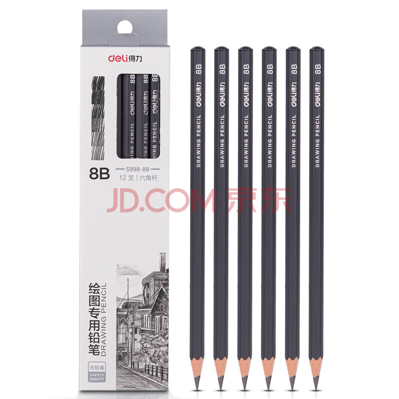 商品相册:得力(deli)绘图铅笔12支8B素描铅笔学生六角杆书写黑铅美术写生工程制图笔初学者专用学生开学文具第