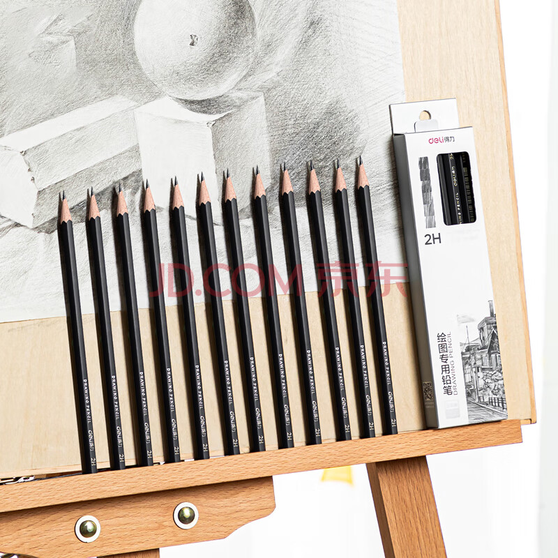 商品相册:得力(deli)绘图铅笔12支2H素描铅笔学生六角杆书写黑铅美术写生工程制图笔初学者专用学生开学文具第