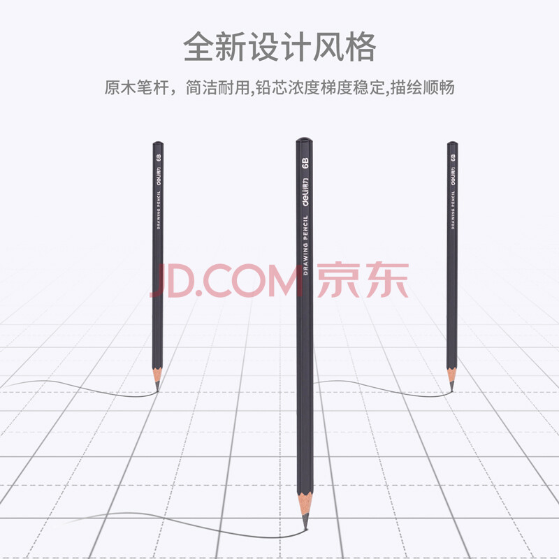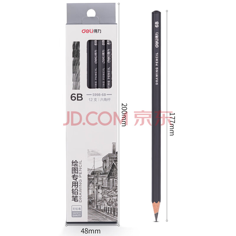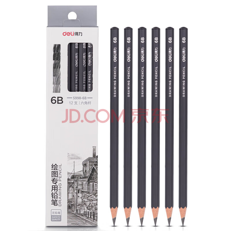 商品相册:得力(deli)绘图铅笔12支6B素描铅笔学生六角杆书写黑铅美术写生工程制图笔初学者专用学生开学文具第
