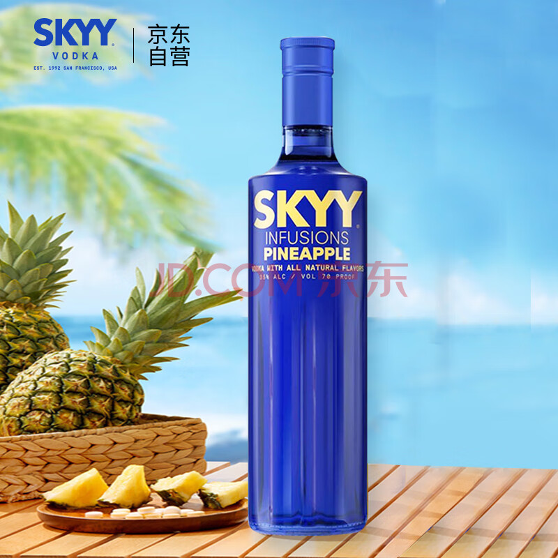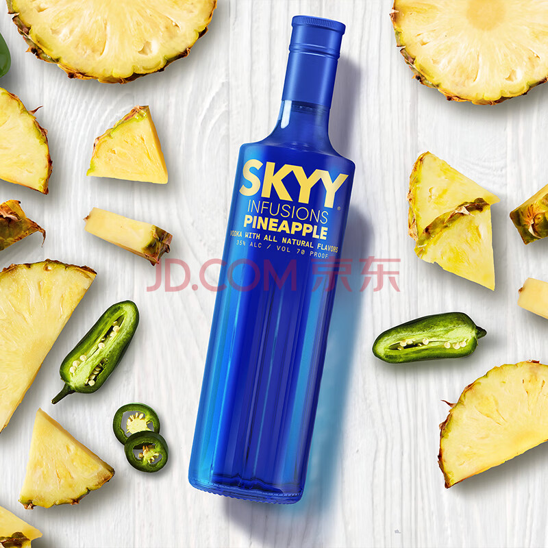 商品相册:深蓝(SKYY)SKYY 伏特加 VODKA进口原瓶进口洋酒调酒 750ML 菠萝味 送礼第1张/共7