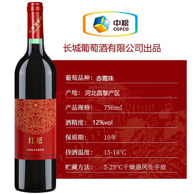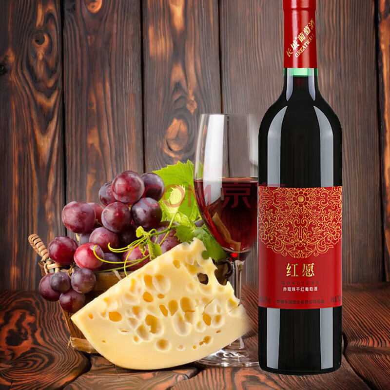 商品相册:长城(GreatWall)红标红愿赤霞珠干红葡萄酒750ML*6瓶整箱装红酒宴席酒 年货节送礼第