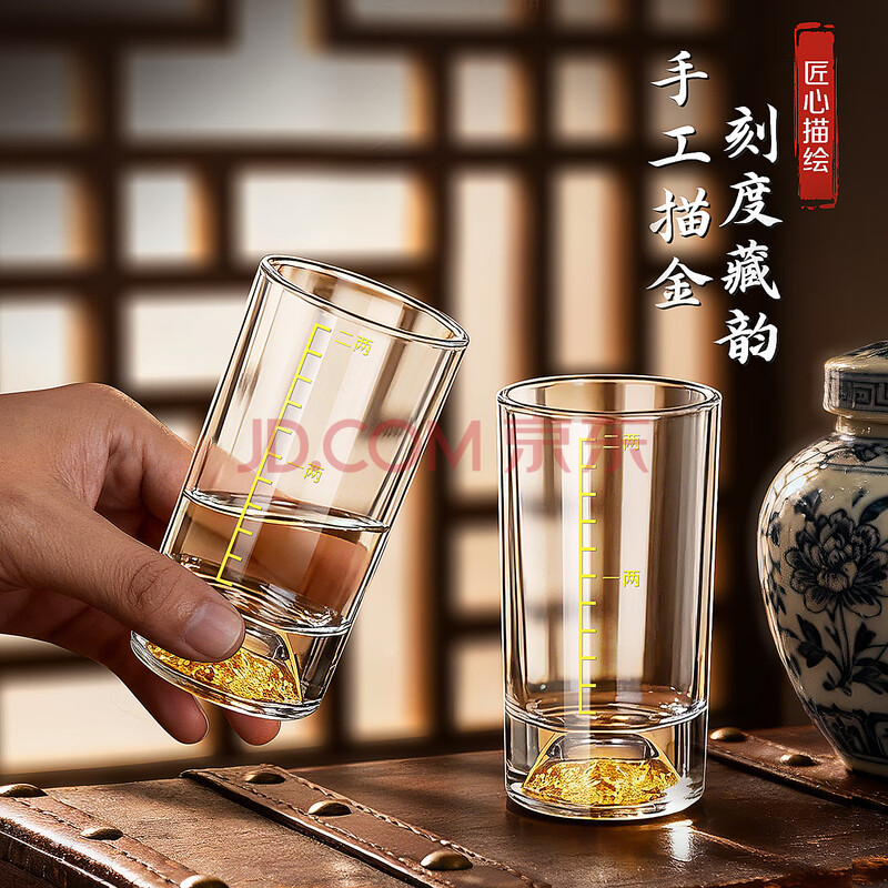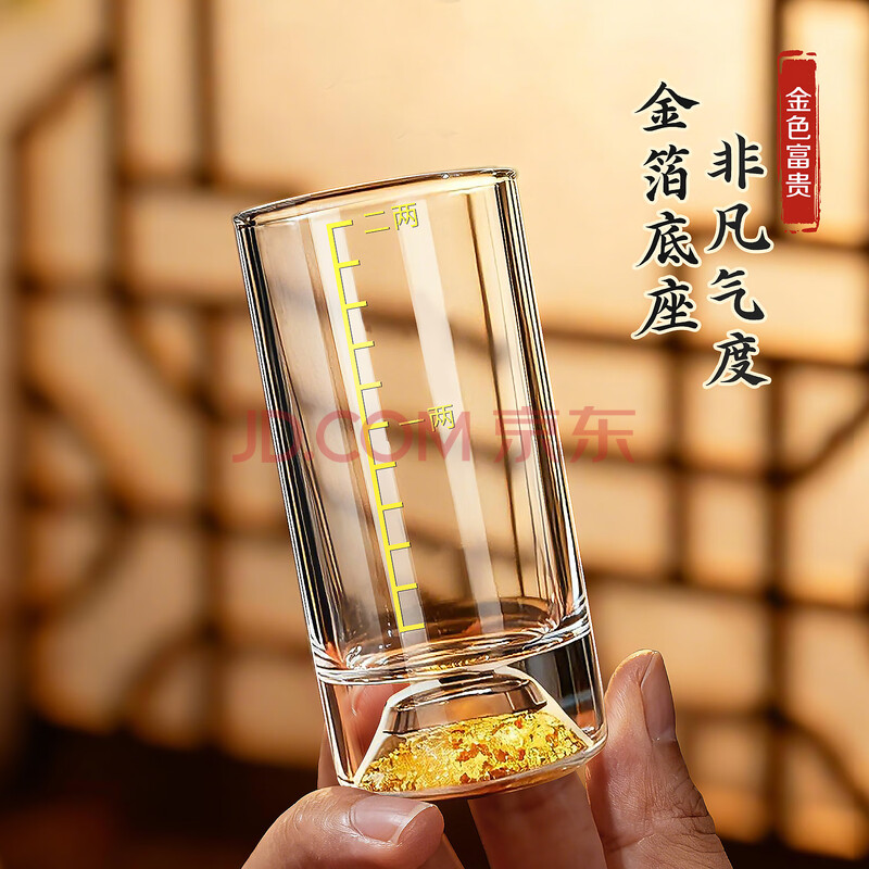 商品相册:青苹果手握金山金箔二两白酒杯6只装 水晶玻璃烈酒杯黄酒杯乔迁生日礼物第