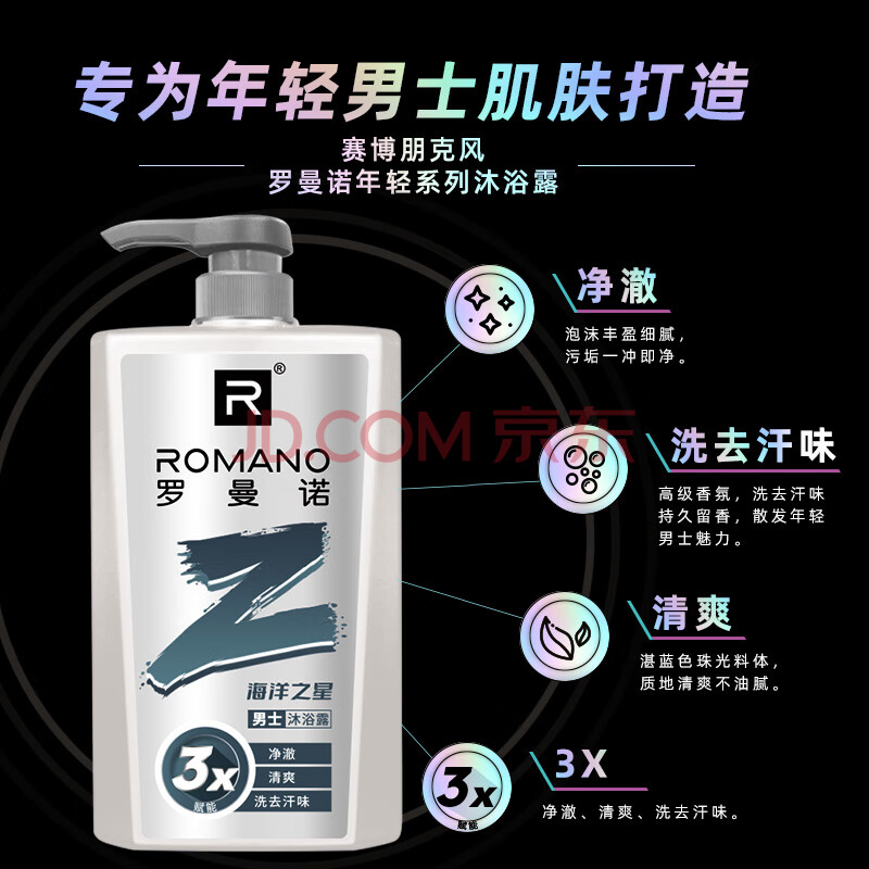 商品相册:罗曼诺(ROMANO)男士沐浴露持久留香 古龙香氛清爽保湿滋润沐浴乳 海洋之星420g第