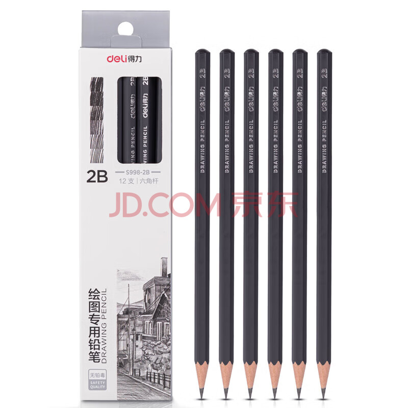 商品相册:得力(deli)绘图铅笔12支2B素描铅笔学生六角杆书写黑铅美术写生工程制图笔初学者专用学生开学文具第