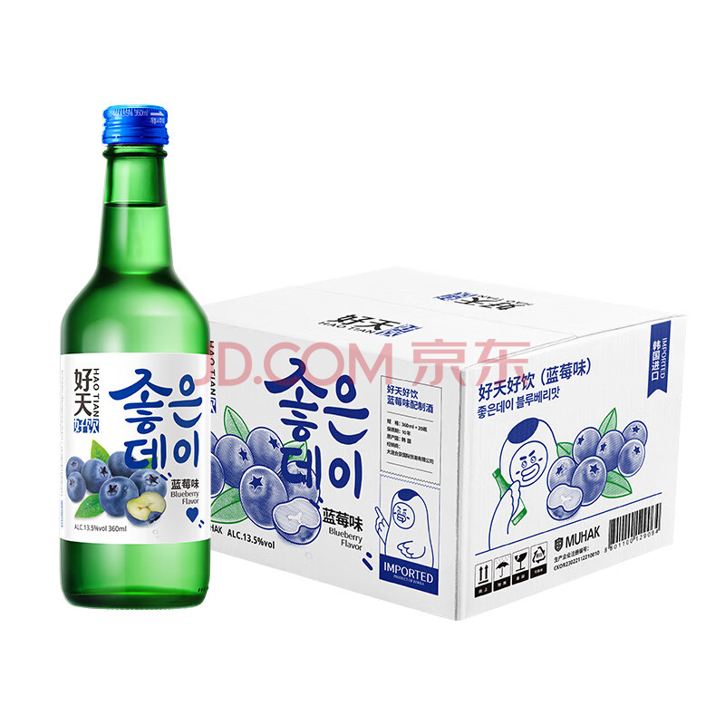 商品相册:好天好饮(GOODDAY)烧酒 360ml*20瓶 13.5度 蓝莓味 韩国进口第